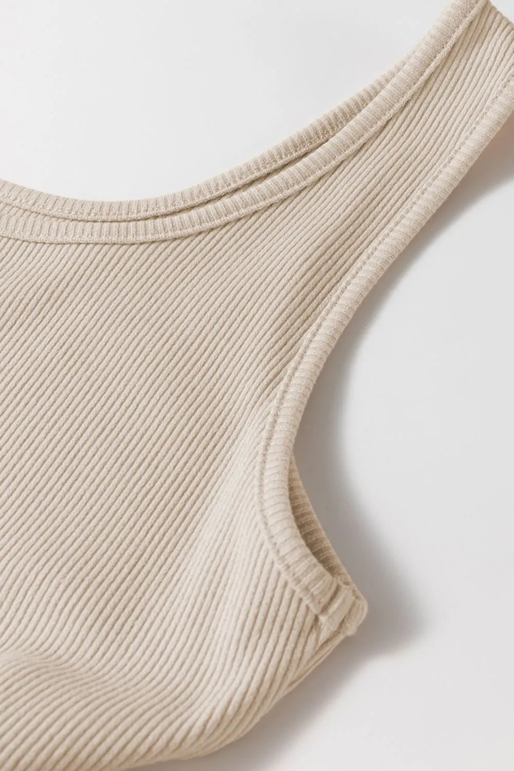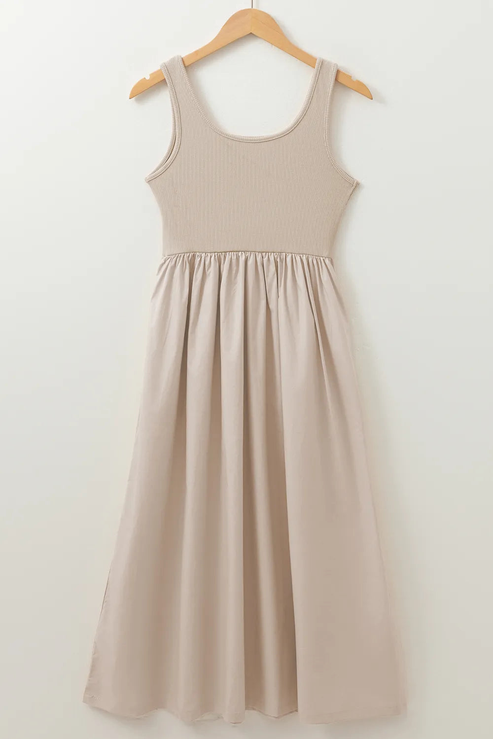 Scoop Neck Ribbed Bodice Sleeveless Midi Tank Dress