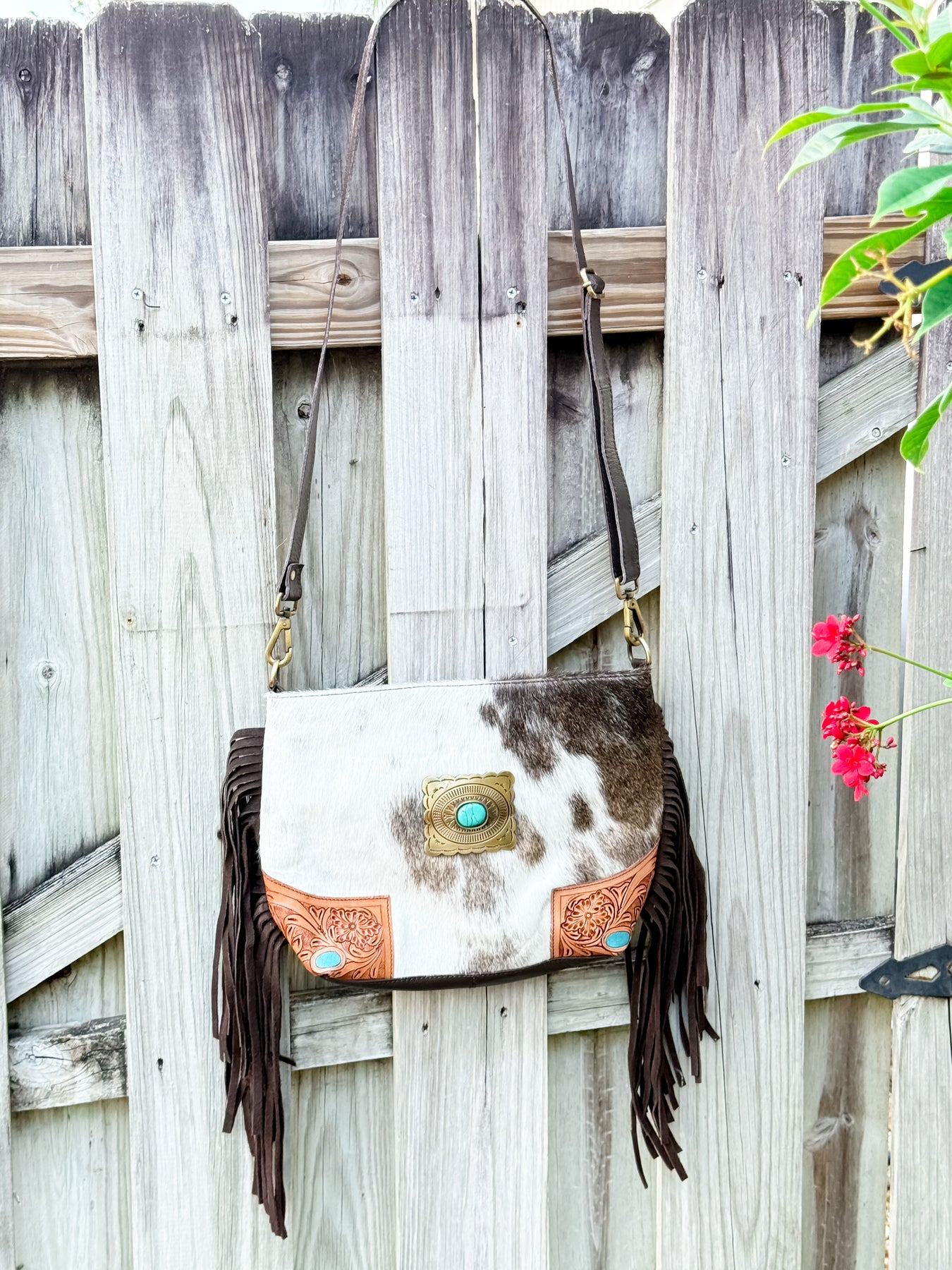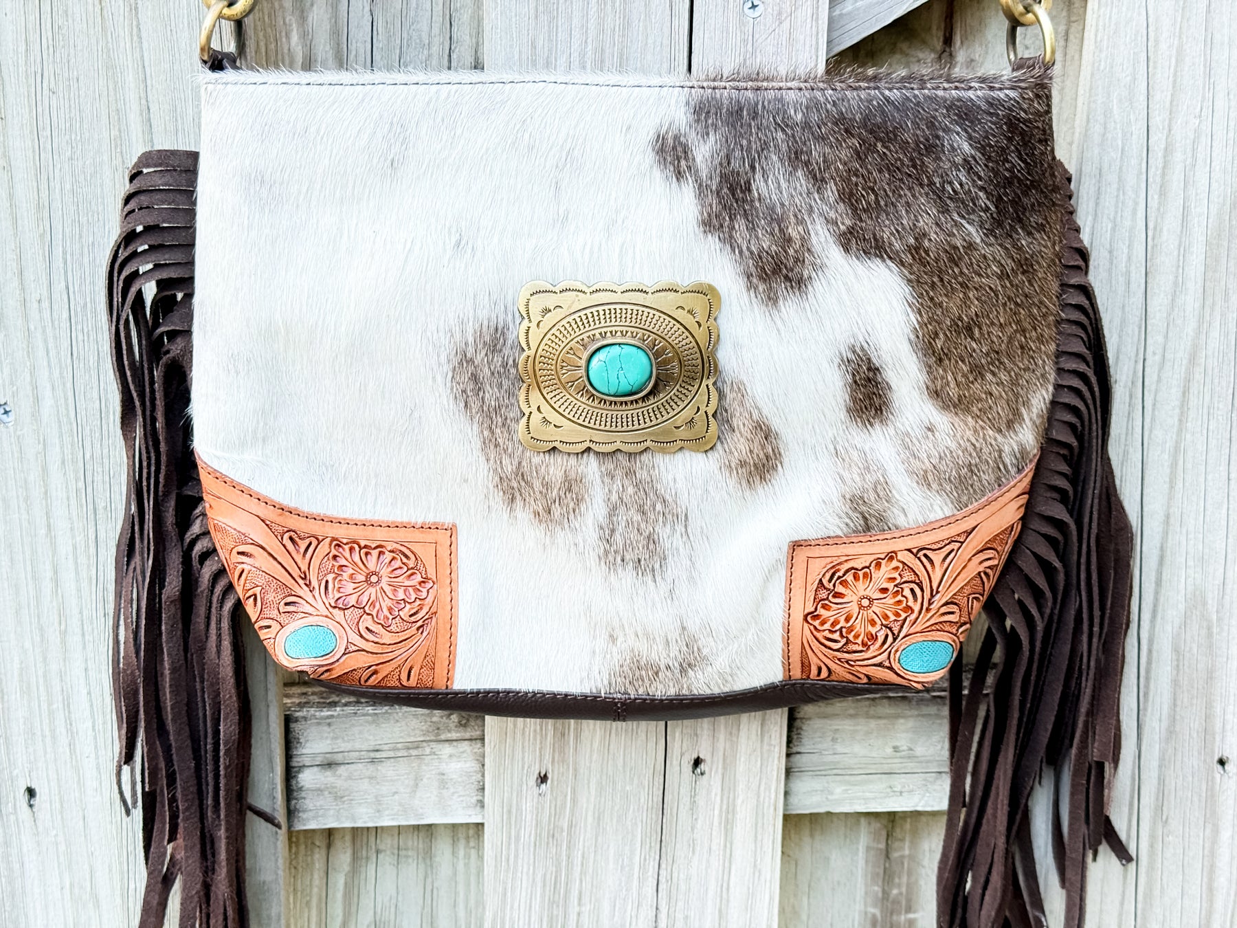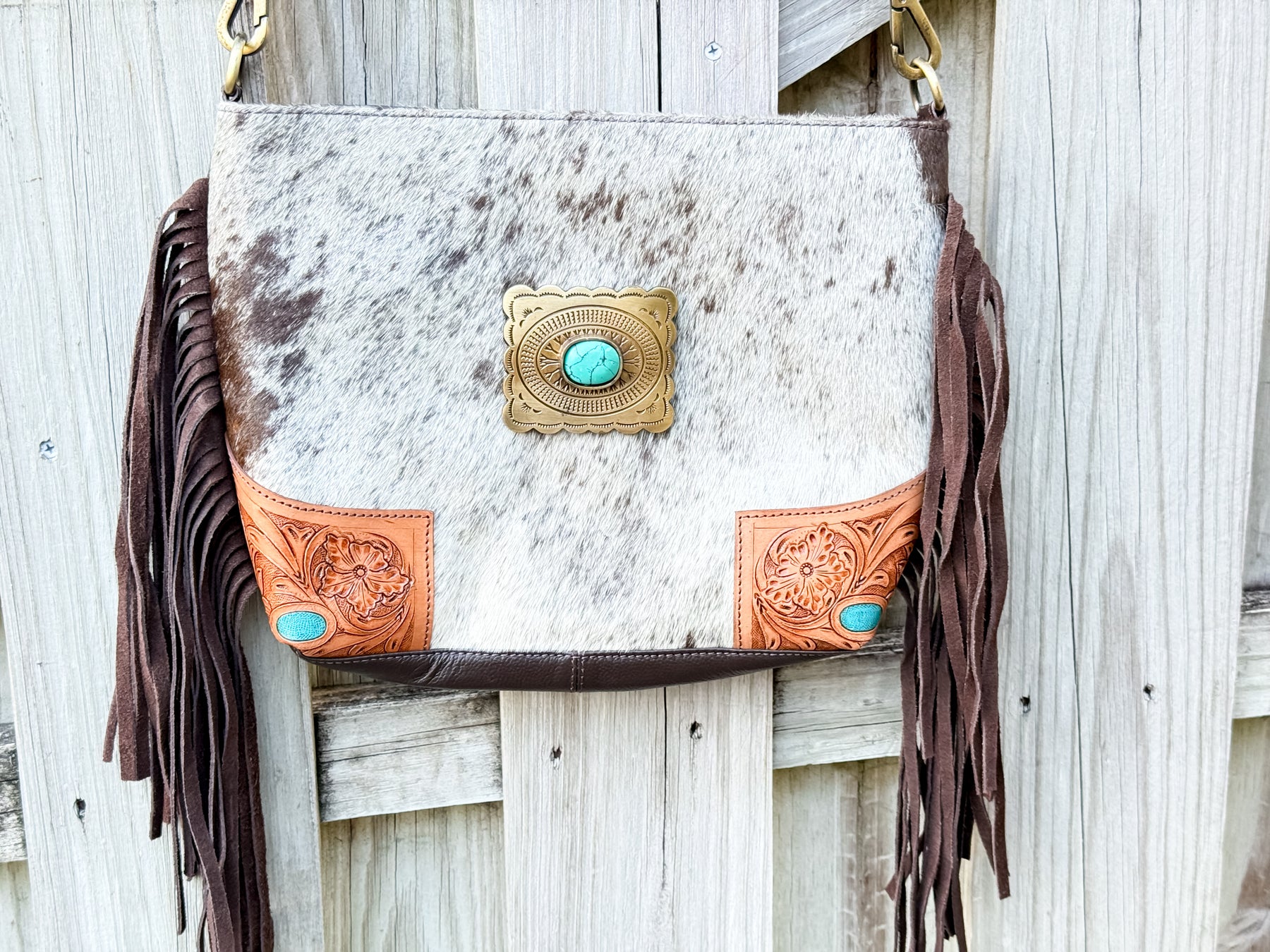 The Concho Carryall | Hair-On Cowhide & Tooled Leather Crossbody Purse
