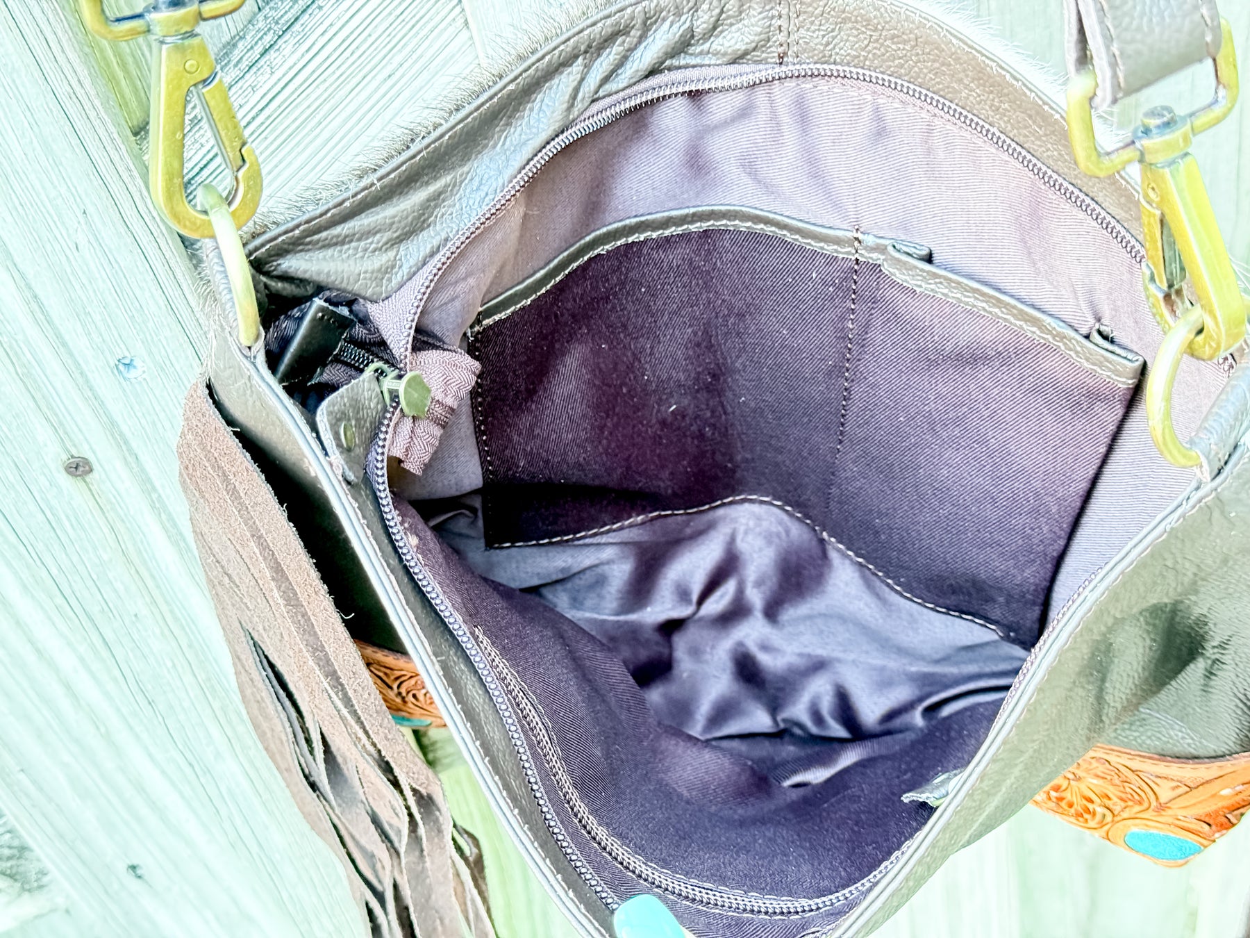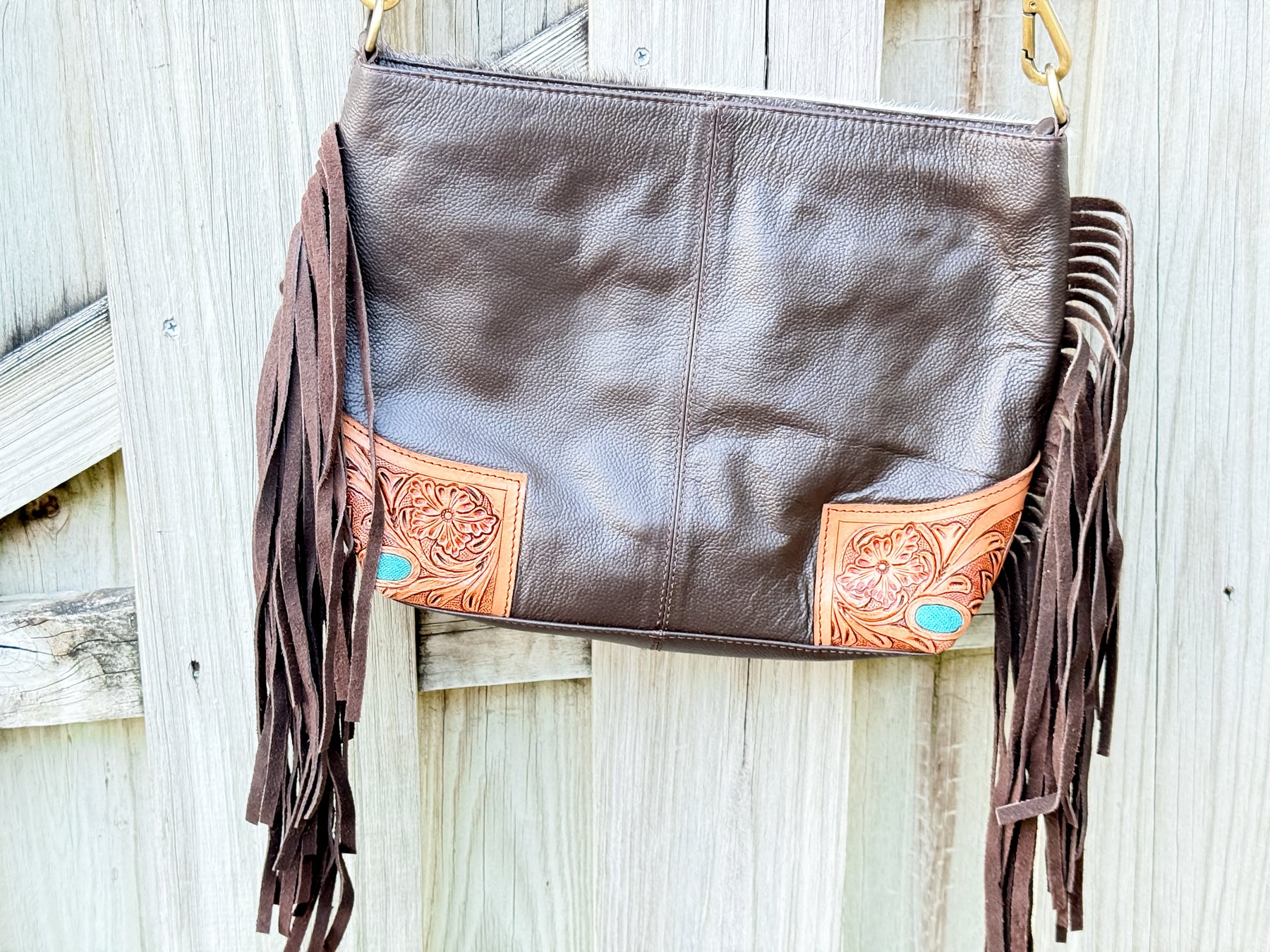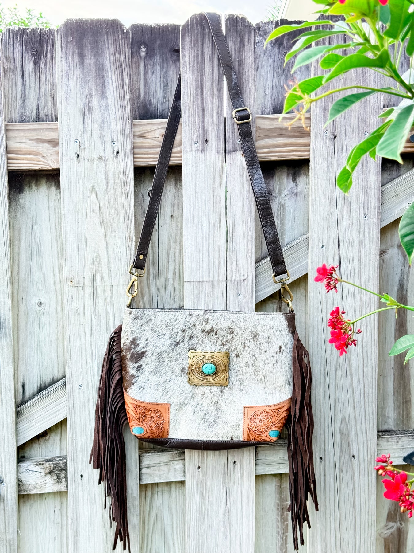 The Concho Carryall | Hair-On Cowhide & Tooled Leather Crossbody Purse