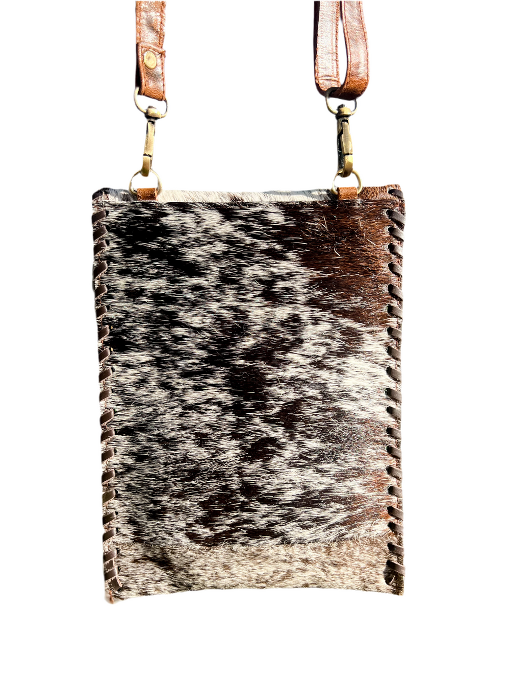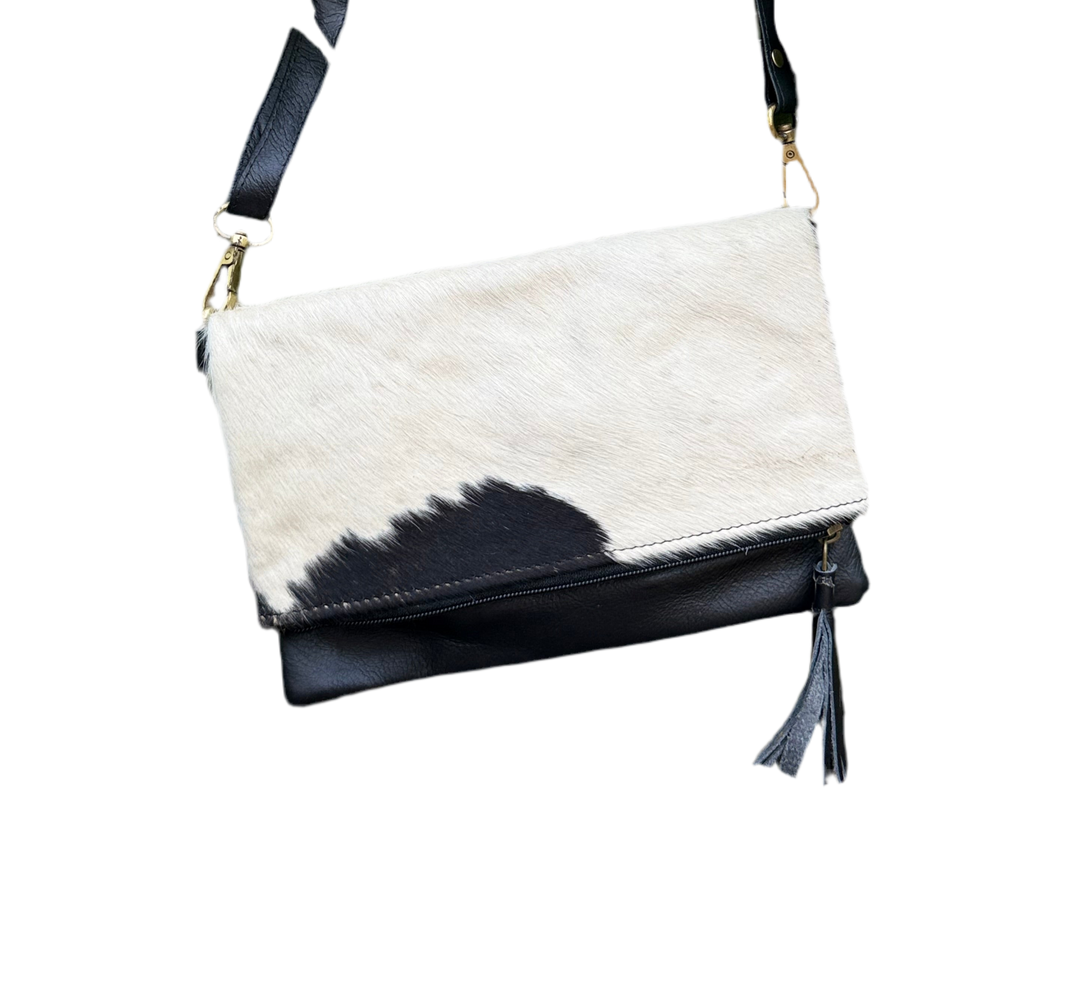 Hide Away Foldover | Small Elegant Black Leather and Hair on Cowhide Crossbody Foldover Purse