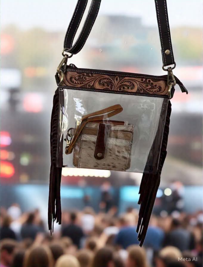 Stadium Surrender | Clear PVC and Tooled Leather with Fringe Event Purse