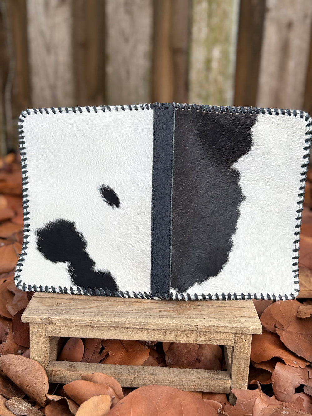 Black Leather & Cowhide Bible Cover – Handmade Western Book Sleeve for Large Bibles & Journals