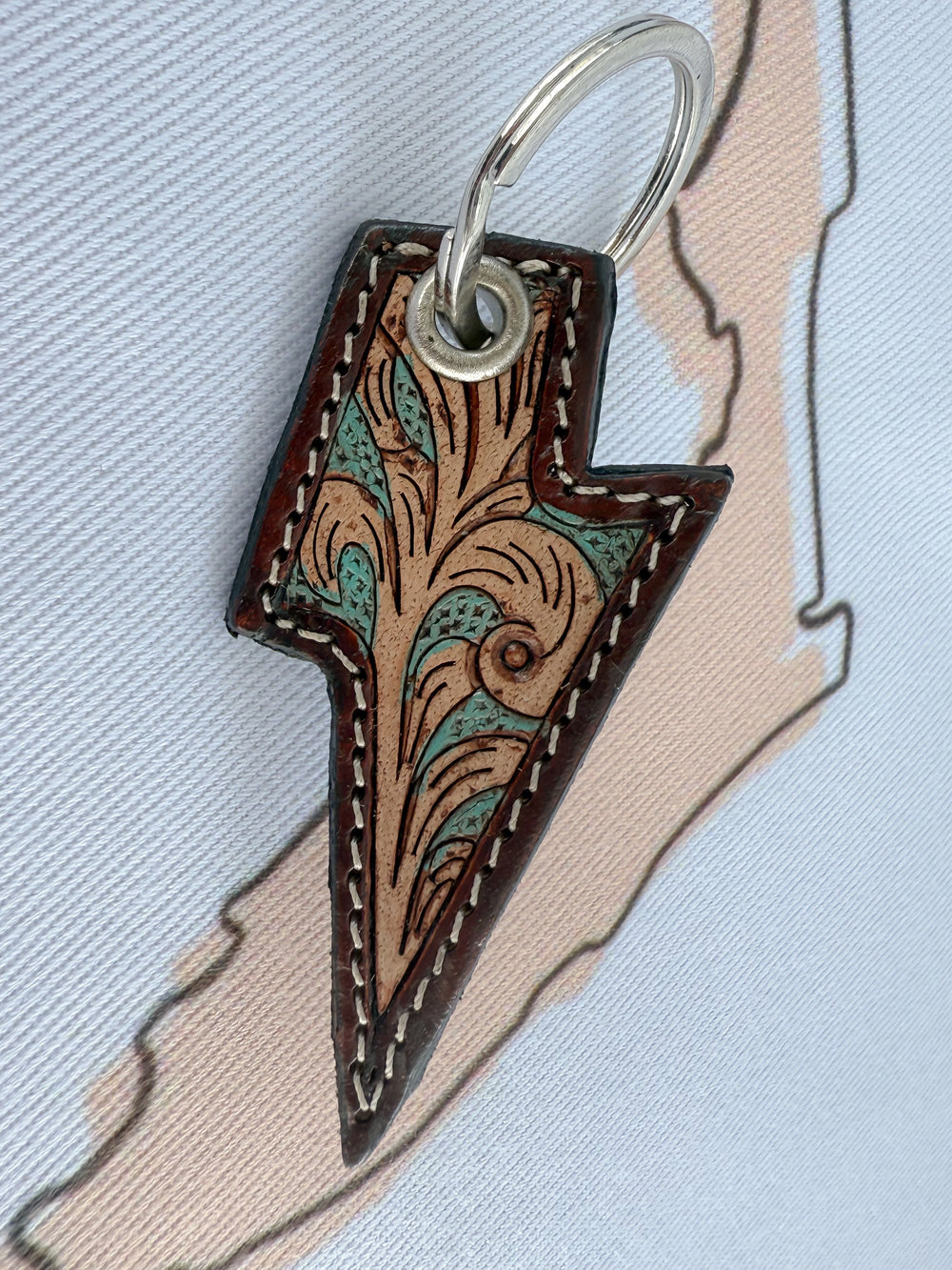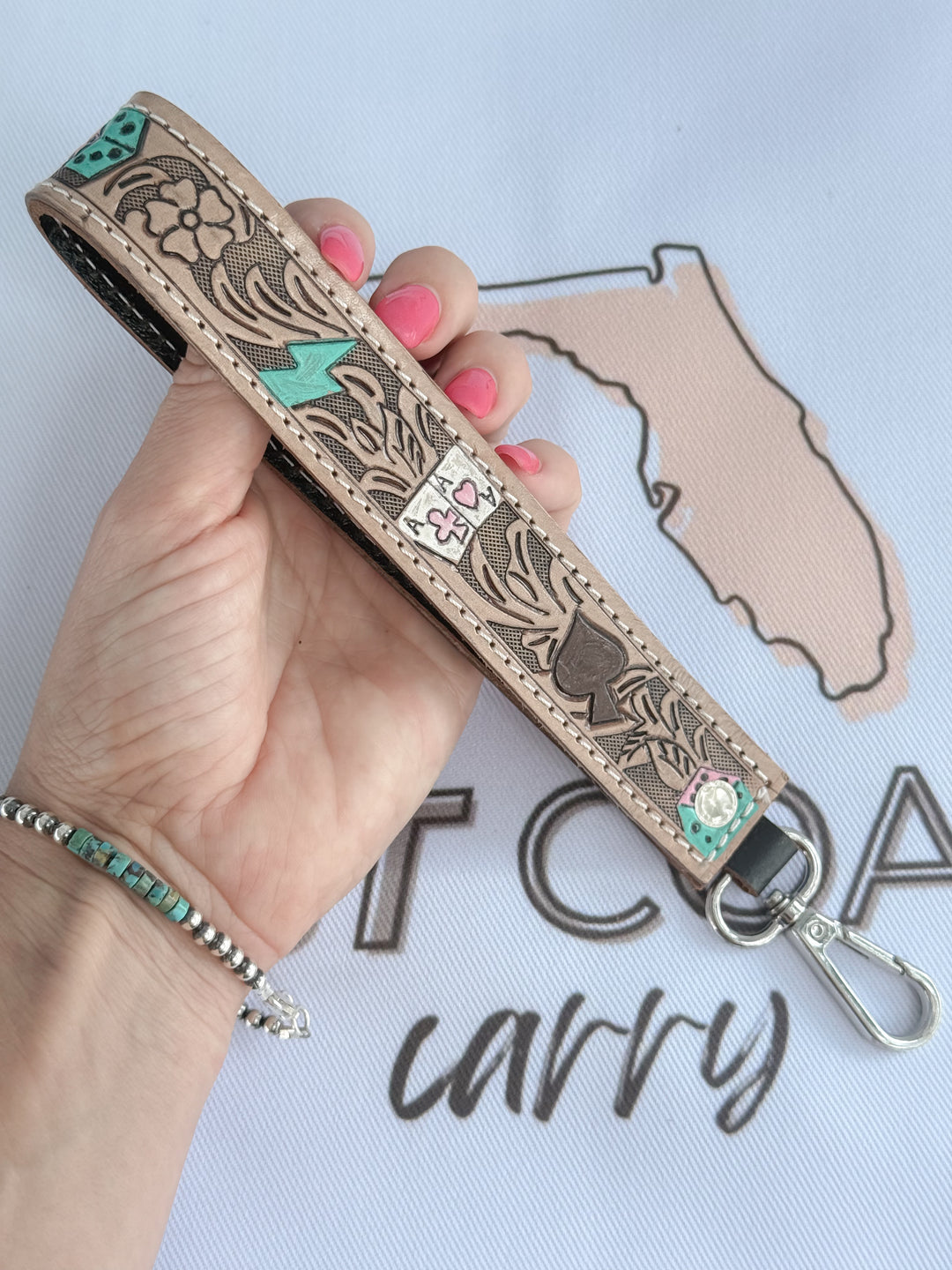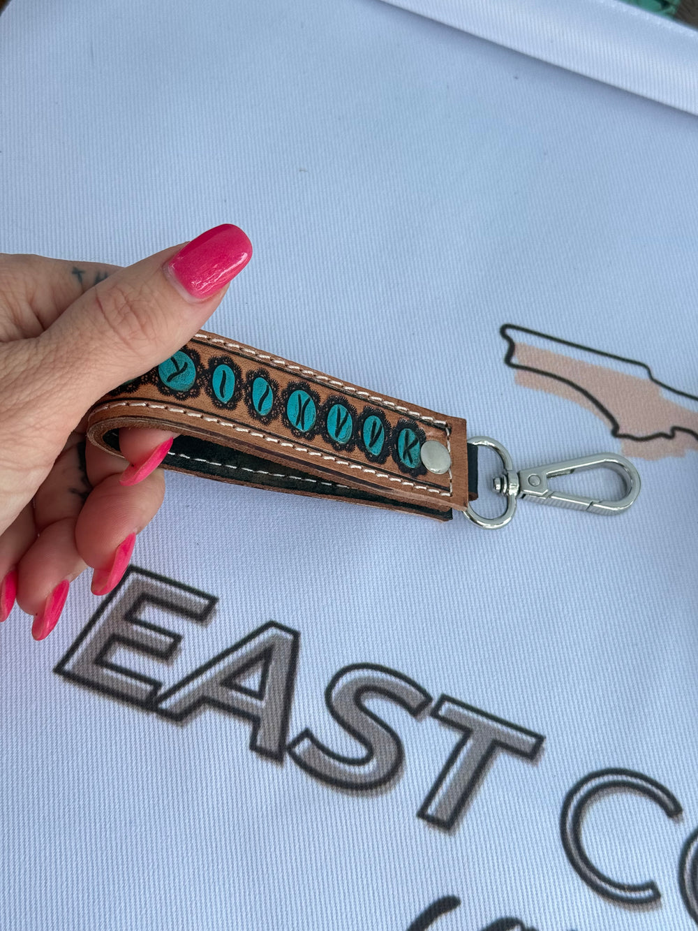 Punchy Hand Tooled and Hand Painted Leather Key Chain Wristlet