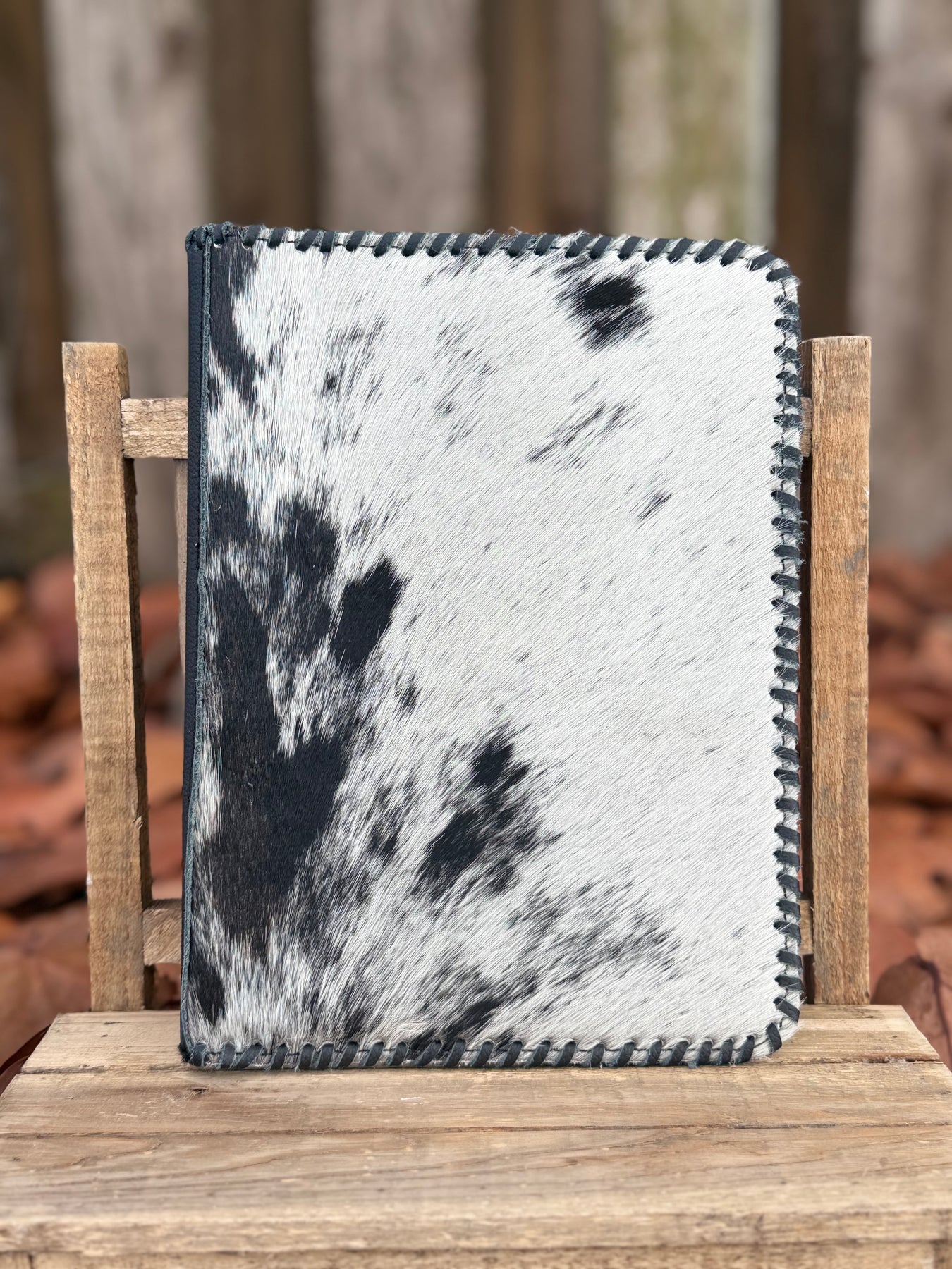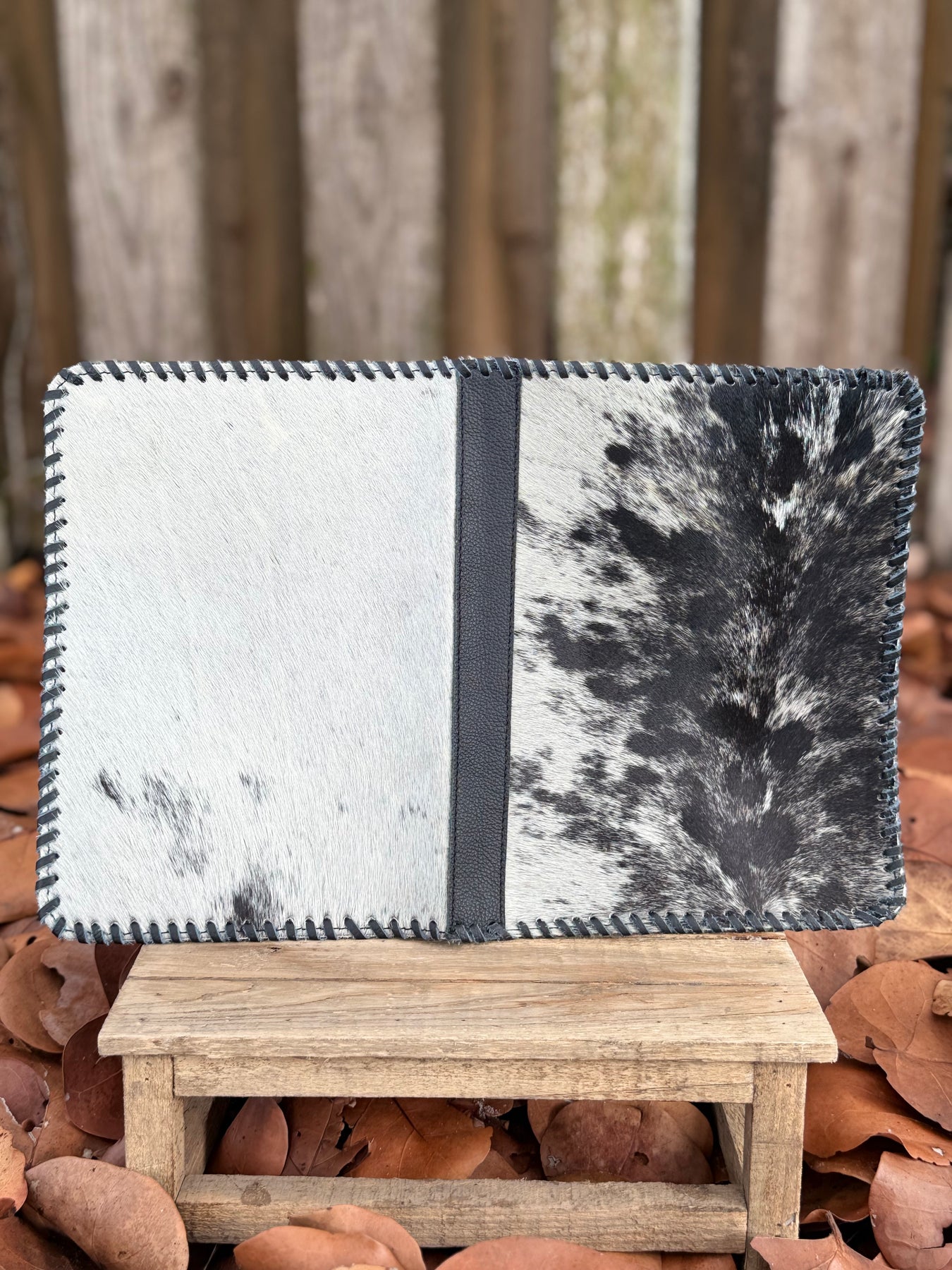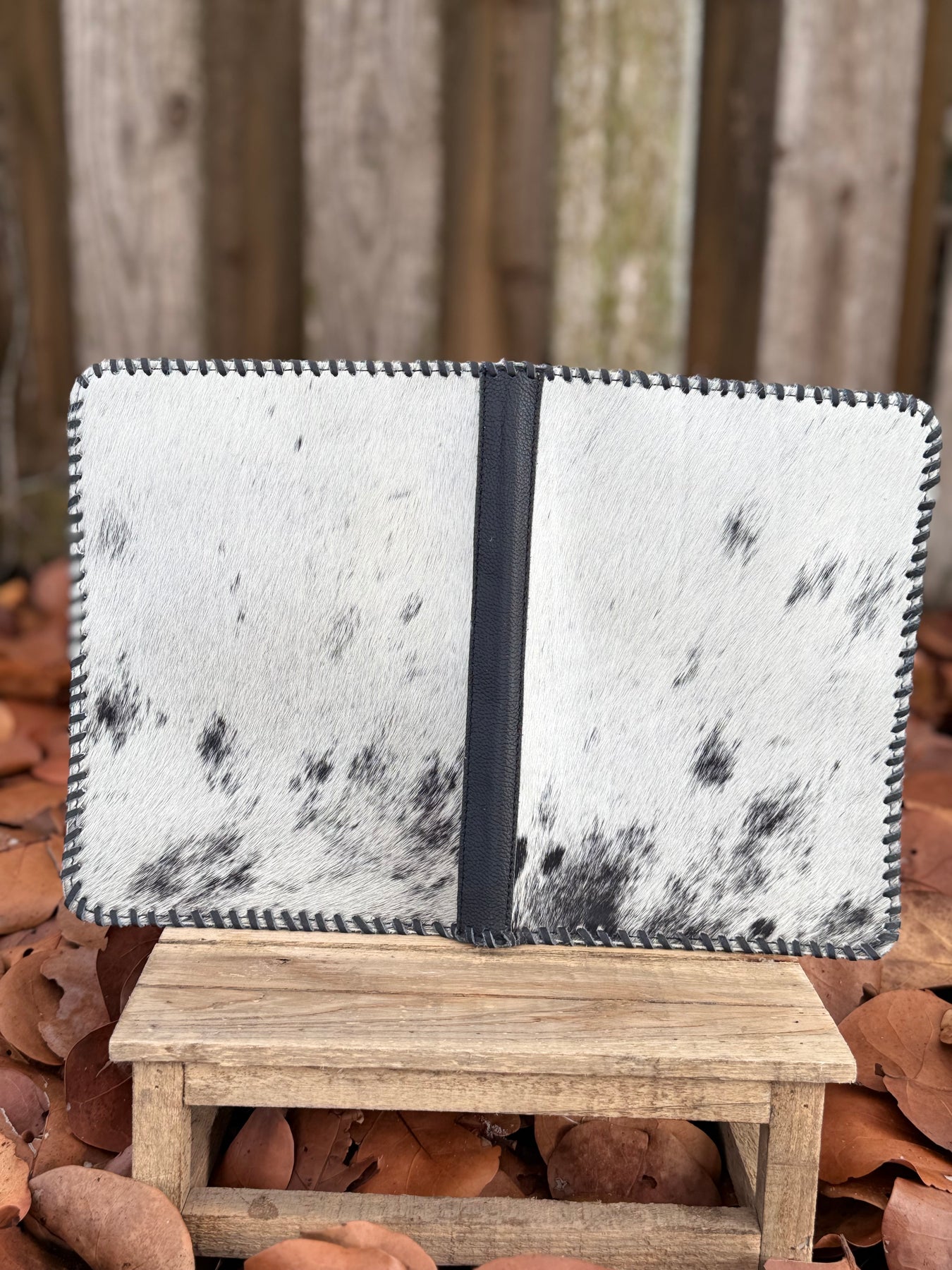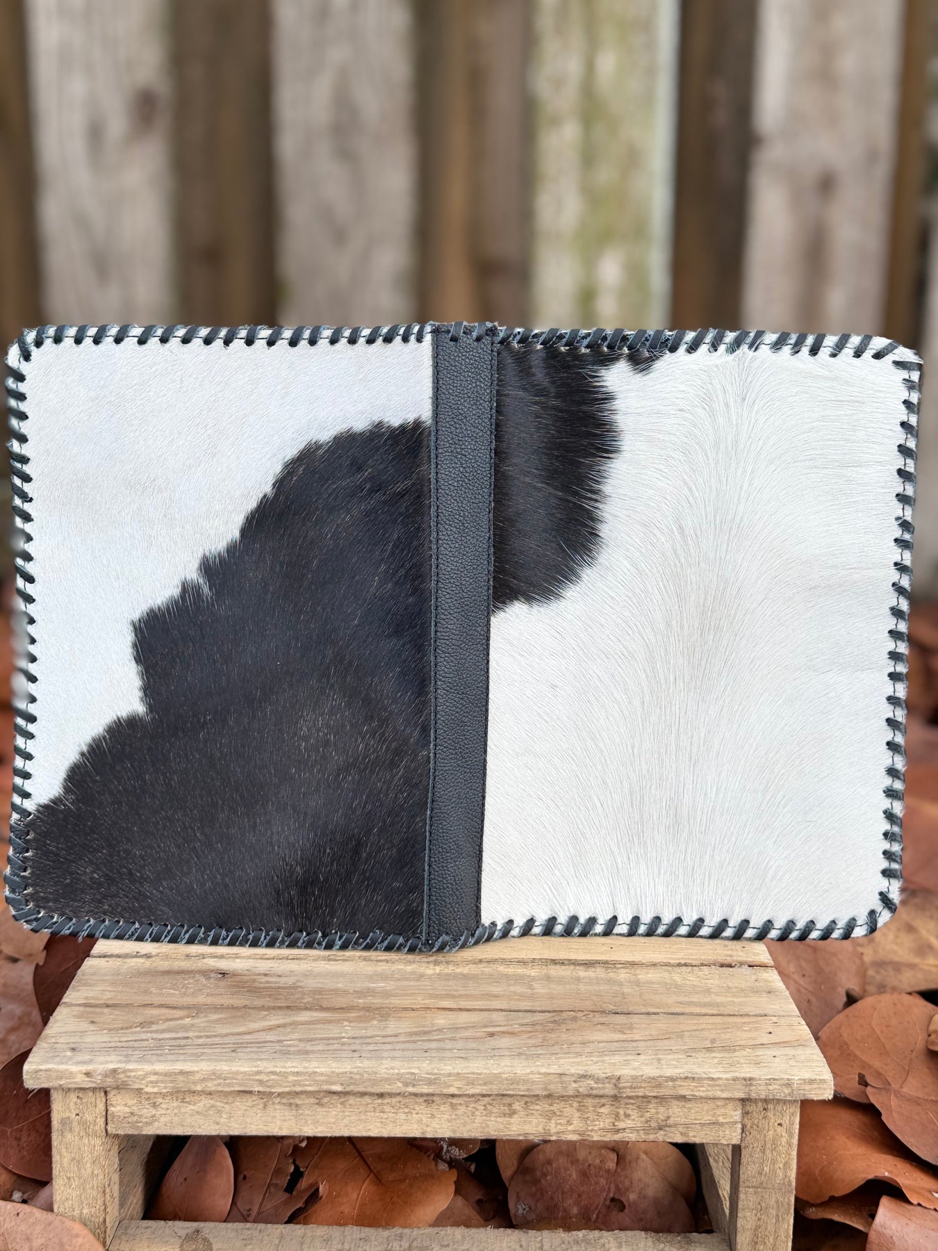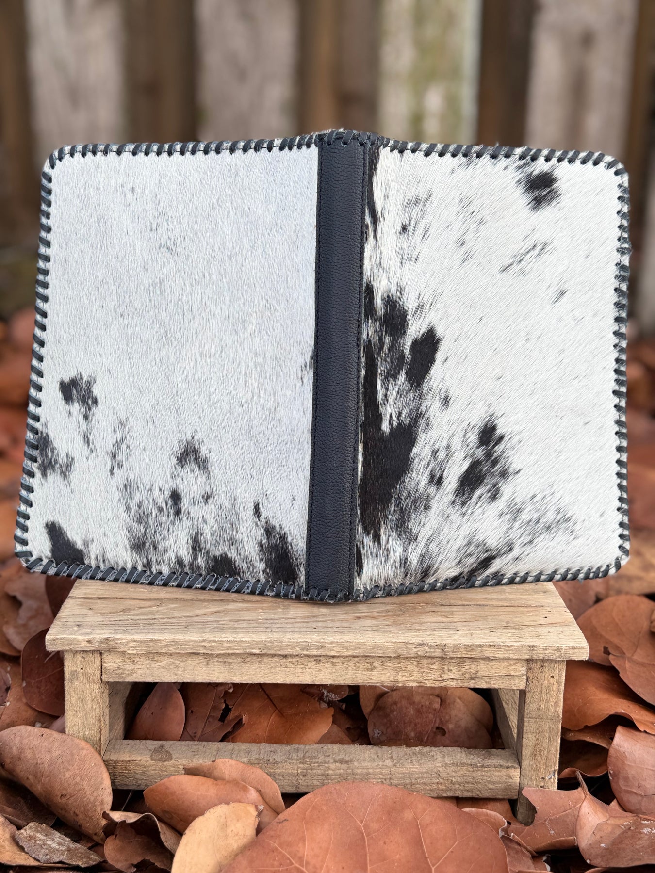 Black Leather & Cowhide Bible Cover – Handmade Western Book Sleeve for Large Bibles & Journals