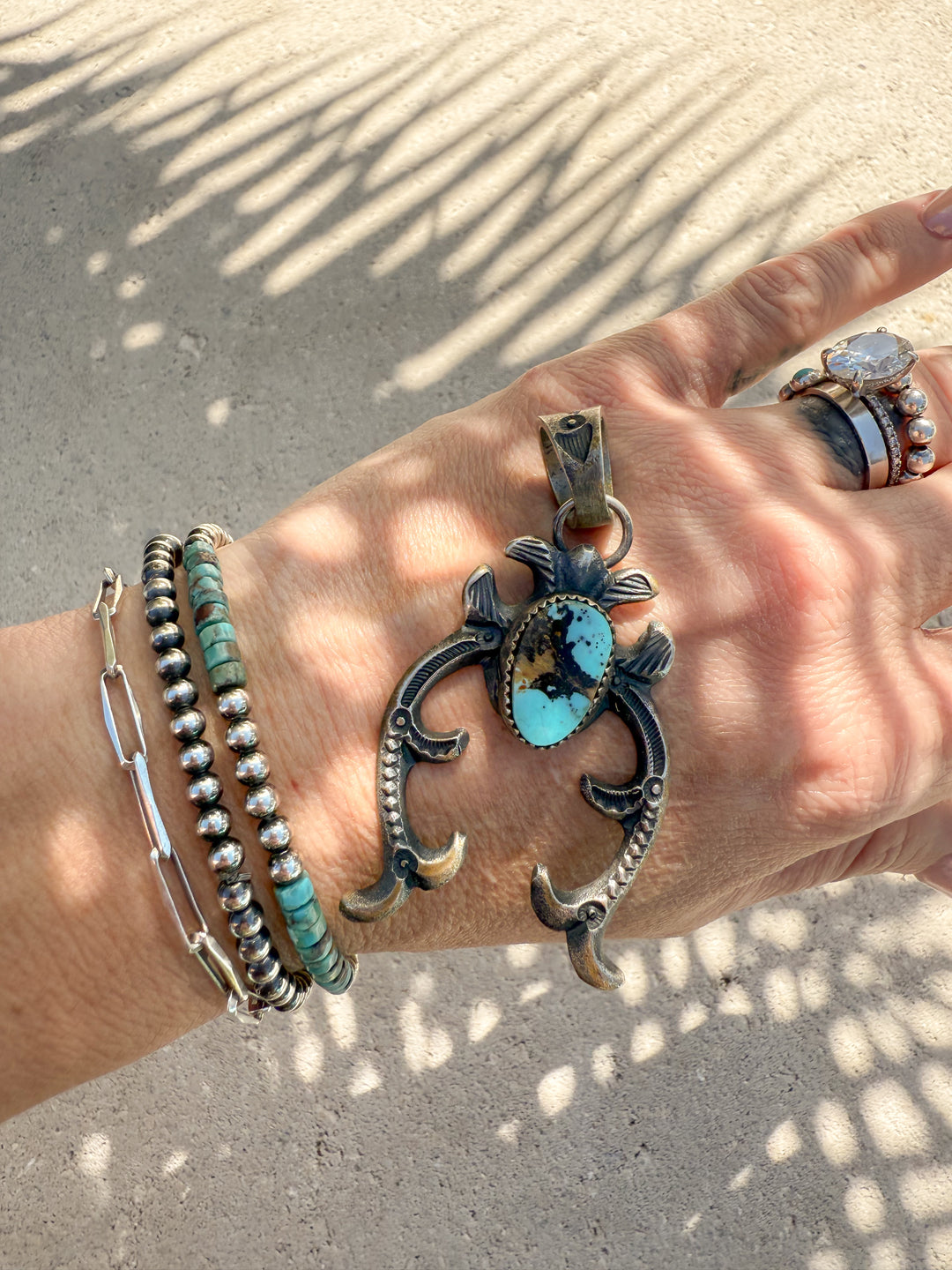 Here you’ll find authentic Native American jewelry — handcrafted in sterling silver with genuine turquoise, natural stones, and generations of artistry — alongside Southwestern sterling pieces created in the spirit of the rugged, free West. Every item in this collection is real sterling silver, never plated or costume. Each piece is handpicked from trusted artisans or personally sourced from vintage collections for its authenticity, quality, and the story it carries.