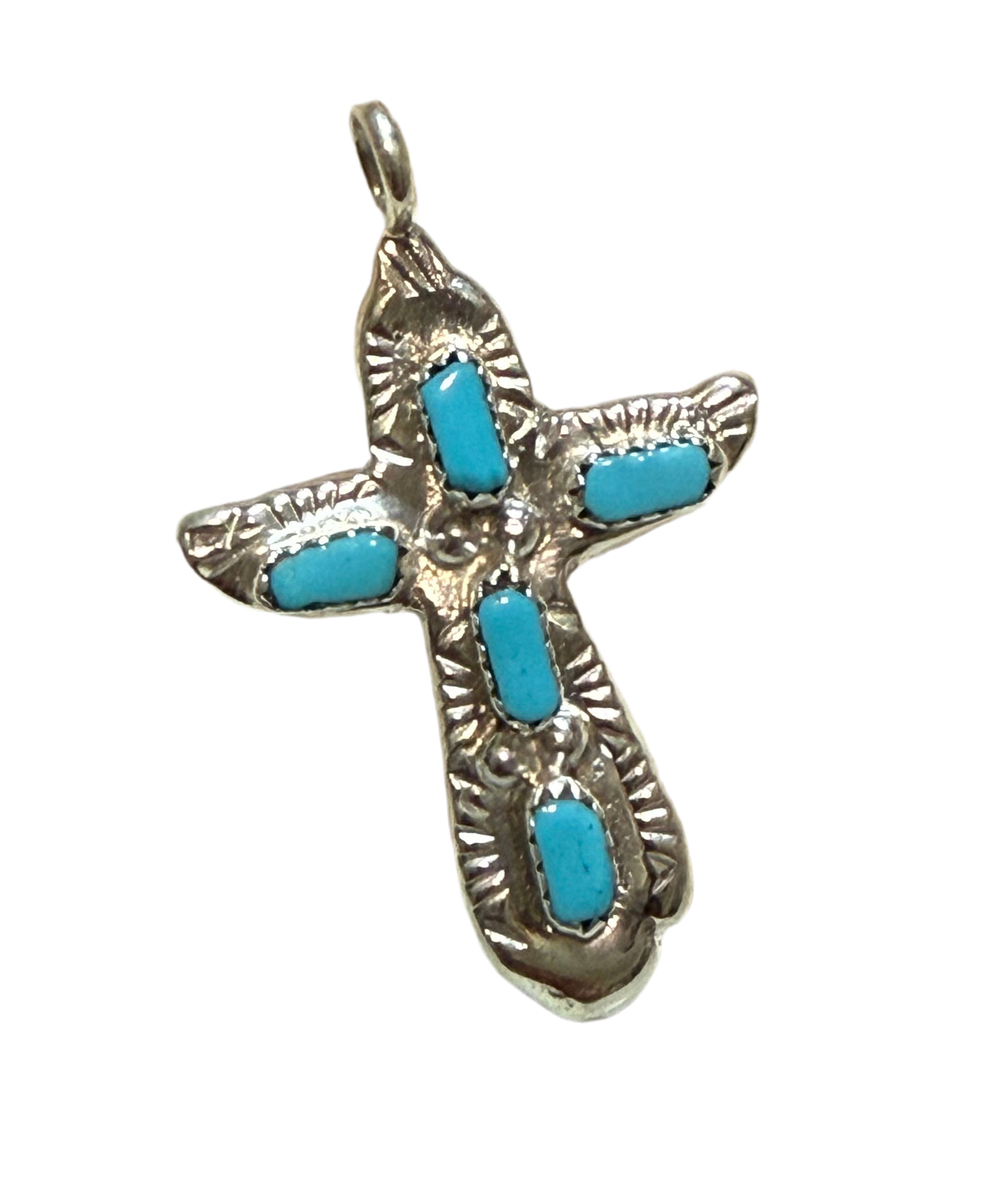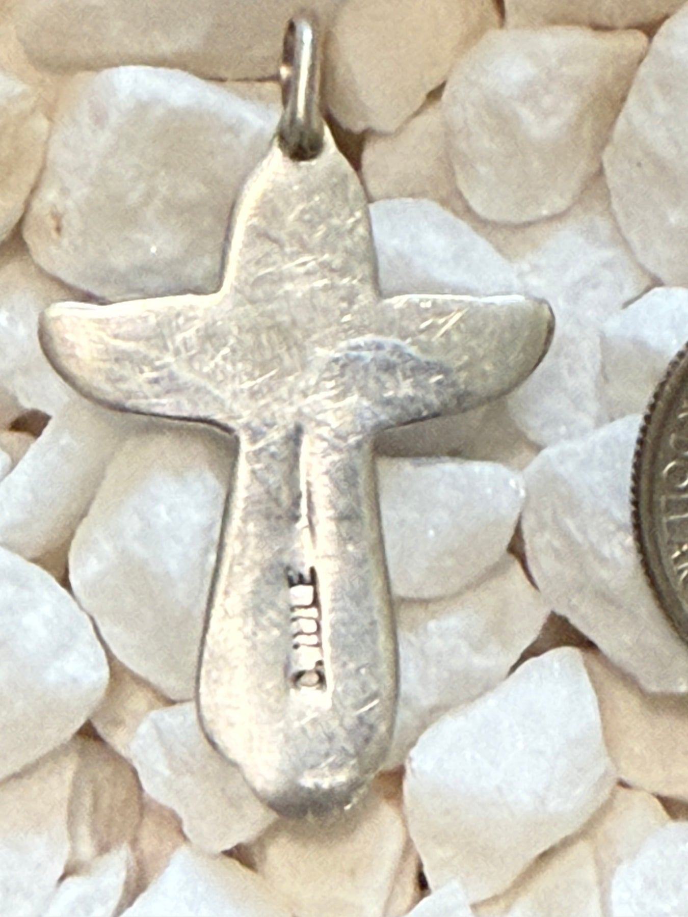 Native American Zuni handmade signed Sterling Silver & Turquoise Cross Pendant
