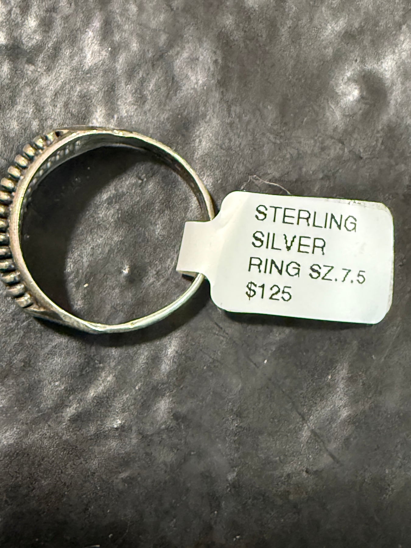 Front and side view of Navajo Sterling Silver Beaded Raindrop Band Ring Handmade by Richard Mike Size 7.5, 8