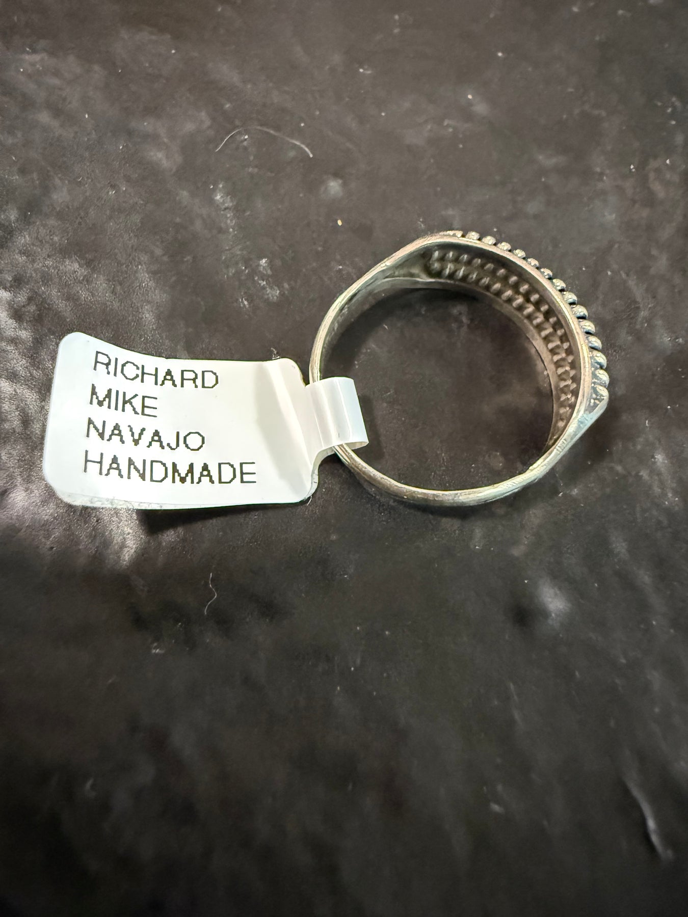 Navajo Sterling Silver Beaded Raindrop Band Ring – Handmade by Richard Mike Size 7.5, 8