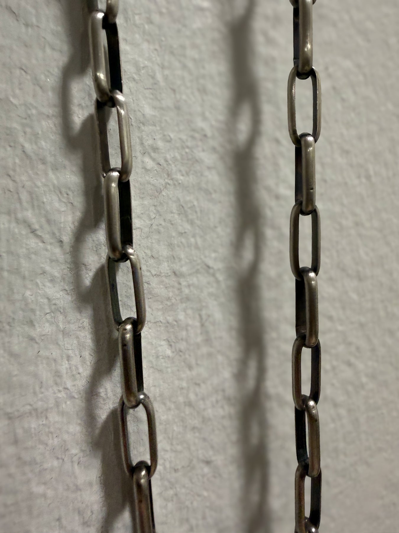Handmade thick sterling silver paperclip chain necklace by Navajo silversmith Shirley Henry. This substantial 24” statement chain features bold elongated handmade links and solid sterling silver weight — perfect worn alone or layered with turquoise pendants. Handmade in every detail even the clasp. Authentic Native American handmade jewelry.