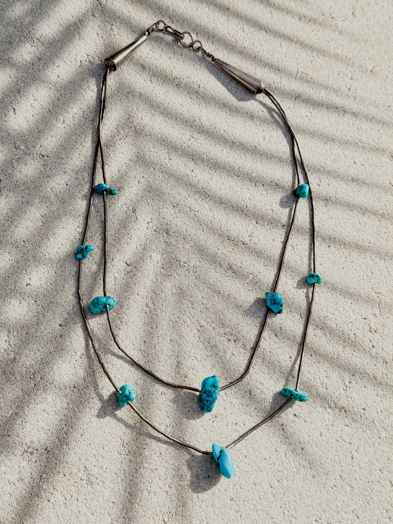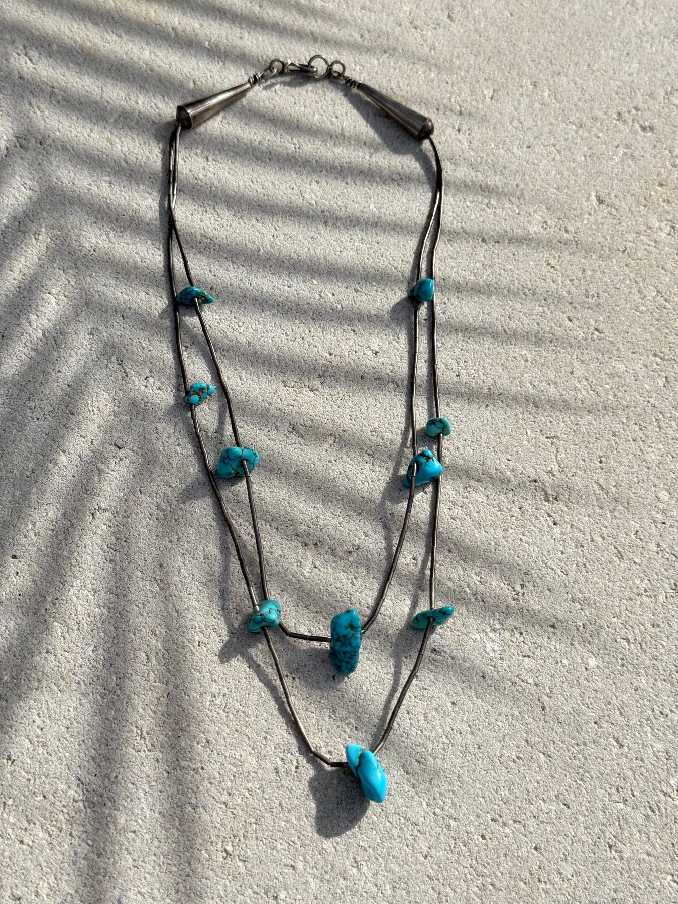 Vintage Liquid Silver Double Strand Turquosie Nugget Neclace
