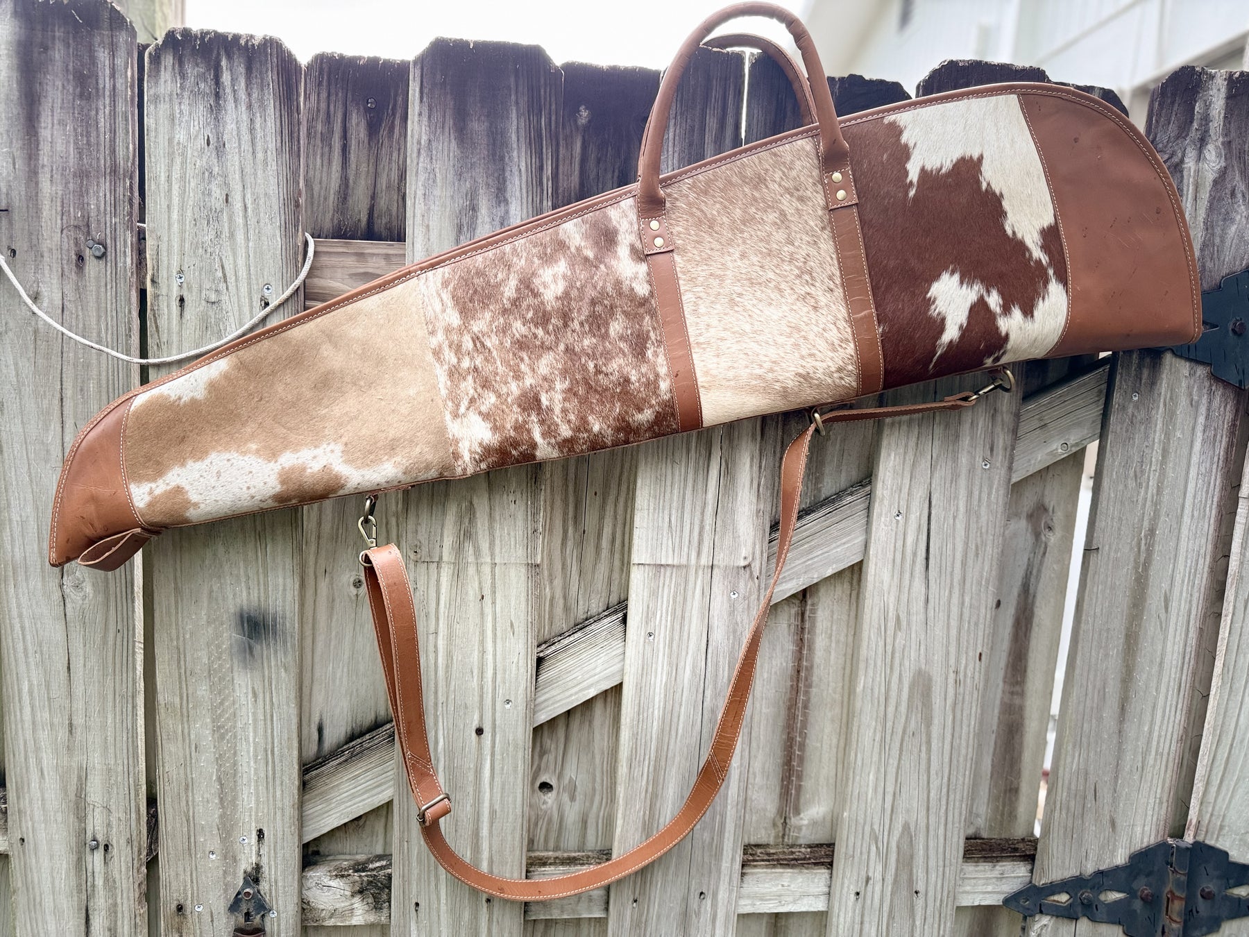 Shotgun Rider | Custom Hair on Cowhide and Caramel Brown Leather Padded Protective Western Rifle Case with Strap and Handles