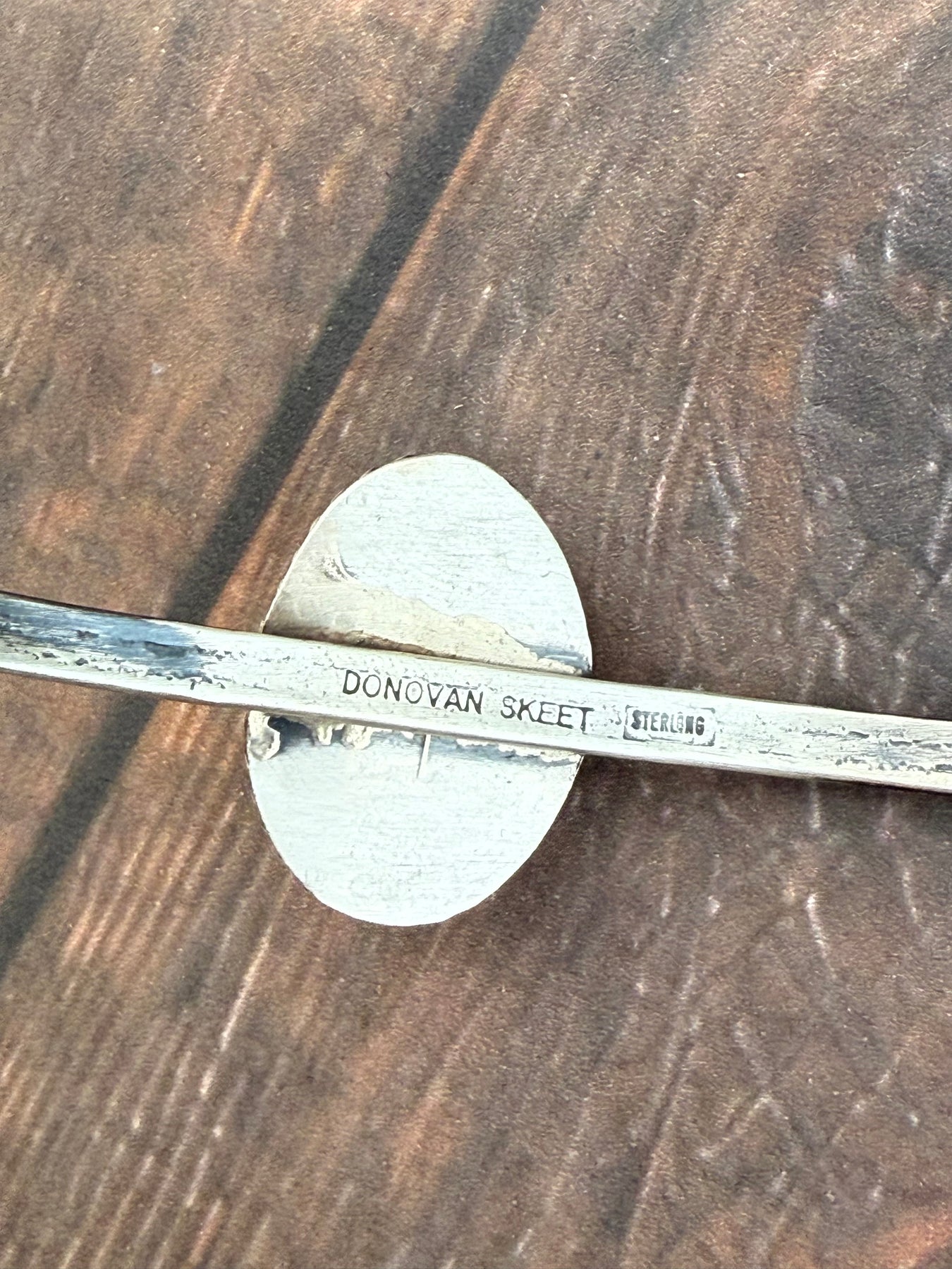 Donovan Skeets Navajo Artist Handmade and Handtooled Sterling Silver 7” Cuff Featurung a Mine 8 Turquoise Center Stone. Cuff has flex to adjust to your wrist