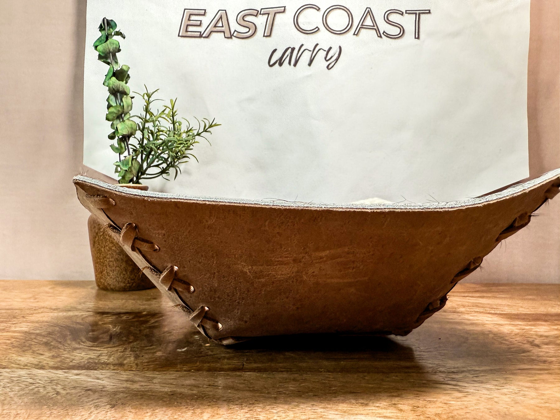 This handmade cowhide and leather catch-all tray is perfect for keeping your keys, wallet, jewelry, or pocket carry organized in one place. The hair-on cowhide interior paired with rugged leather stitching gives it a rustic, one-of-a-kind look that fits perfectly in a western home, entryway, or nightstand.