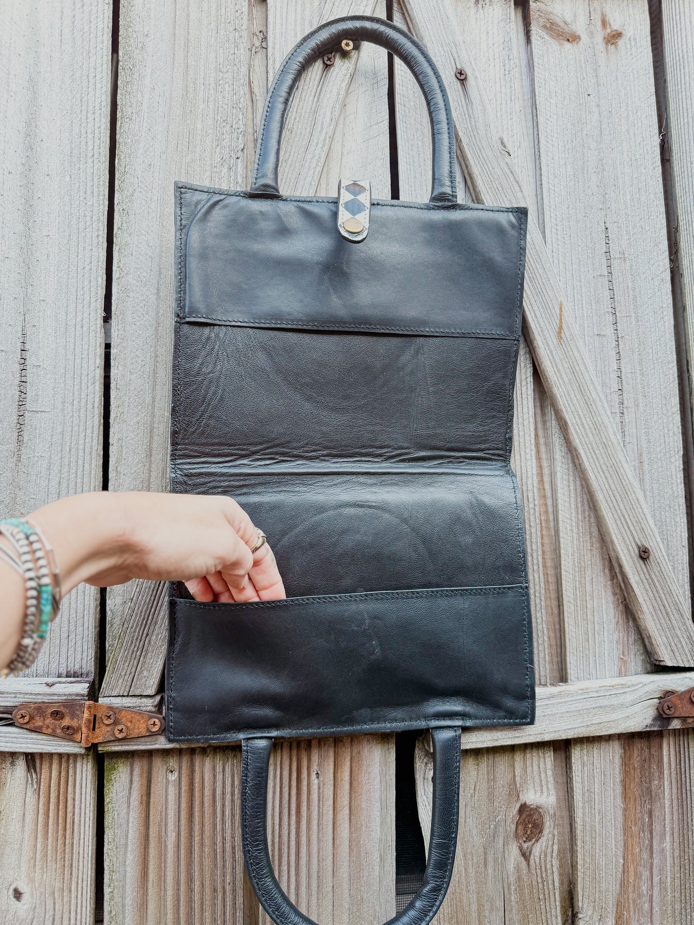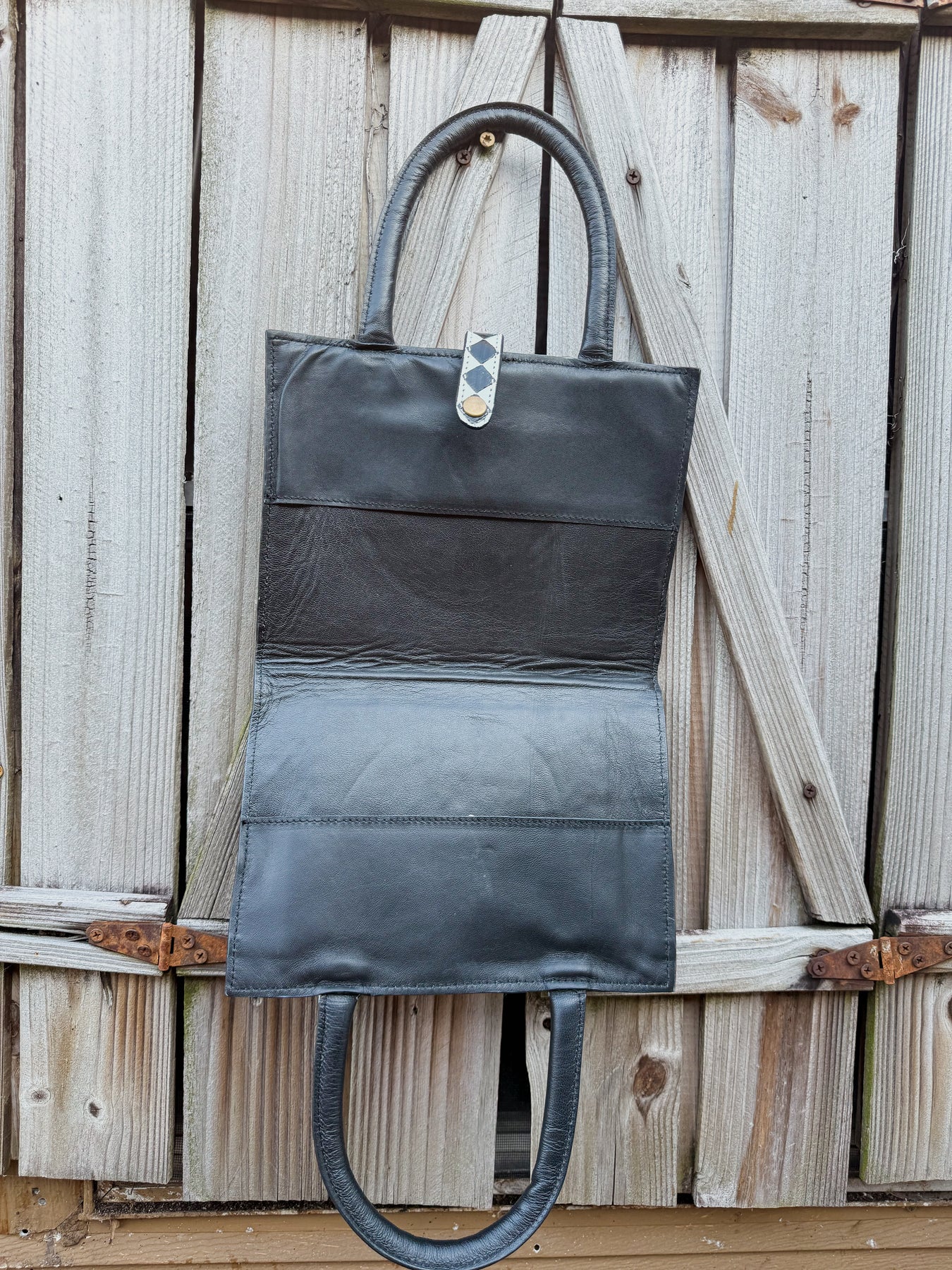 Carry the Word that guides your faith with this all leather black and white cowhide checkered Bible cover with leather handles for carrying with you everywhere you go.
