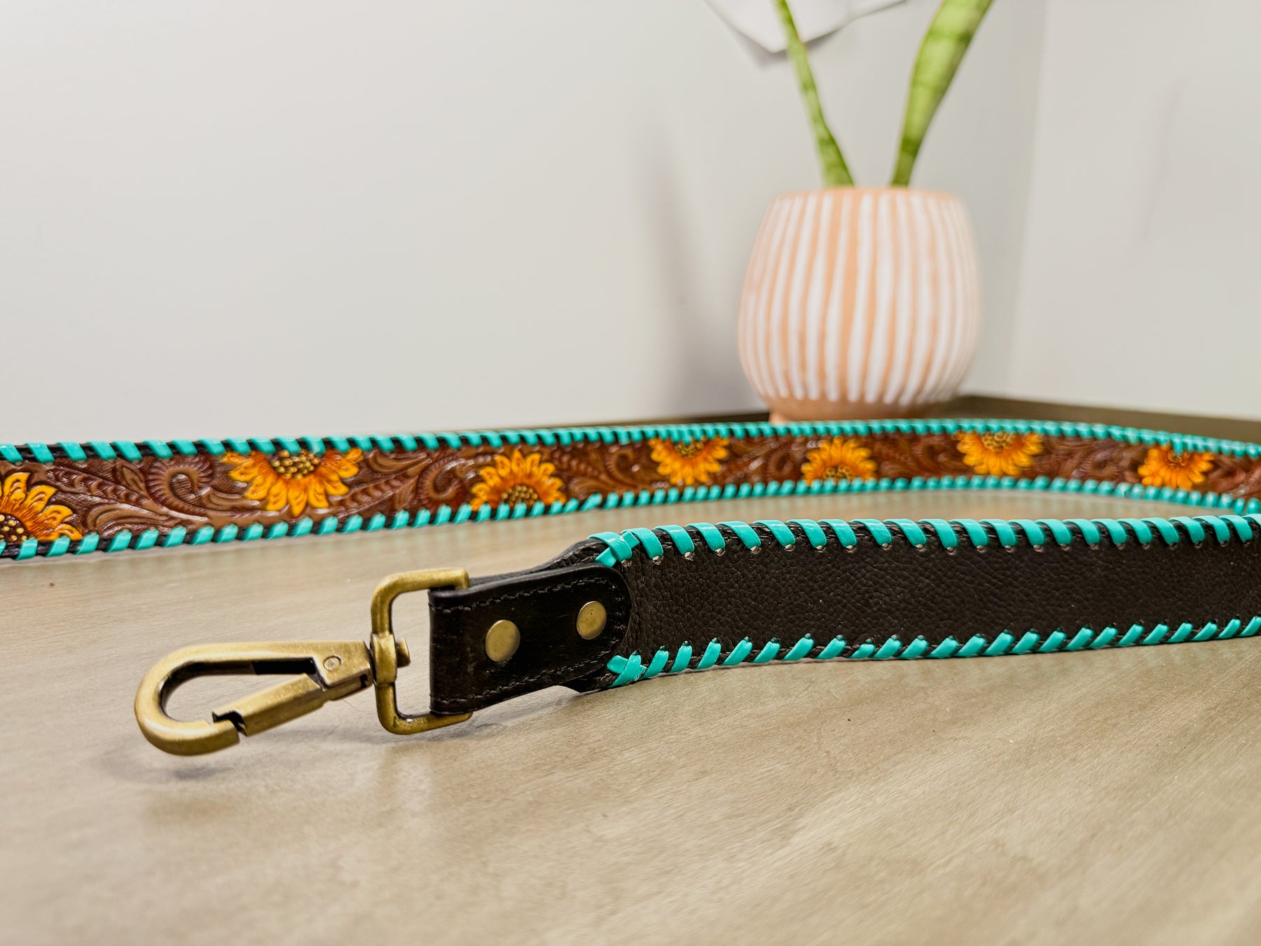Wild Sunflower Western Tooled Leather Crossbody Strap