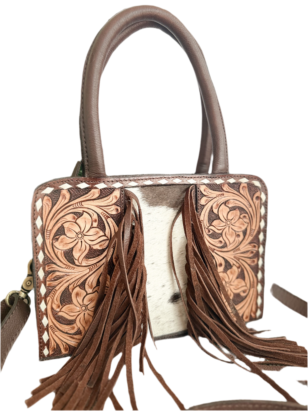 Authentic cowhide leather purses, crossbody bags, and totes — all handmade and hand tooled for lasting beauty and bold living. Every bag is handpicked for its unique character and quality and no two are ever the same.