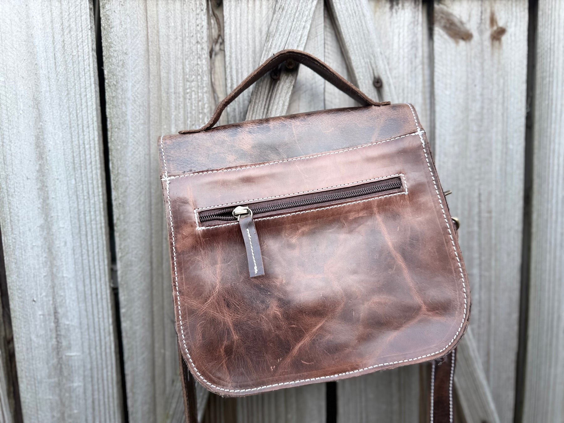Chic, handmade leather crossbody with soft, full-grain soft feel leather. Adjustable crossbody or shoulder strap, top handle, back zipper pocket, secure twist-lock, and elegant boot stitch design front. Timeless meets effortless.