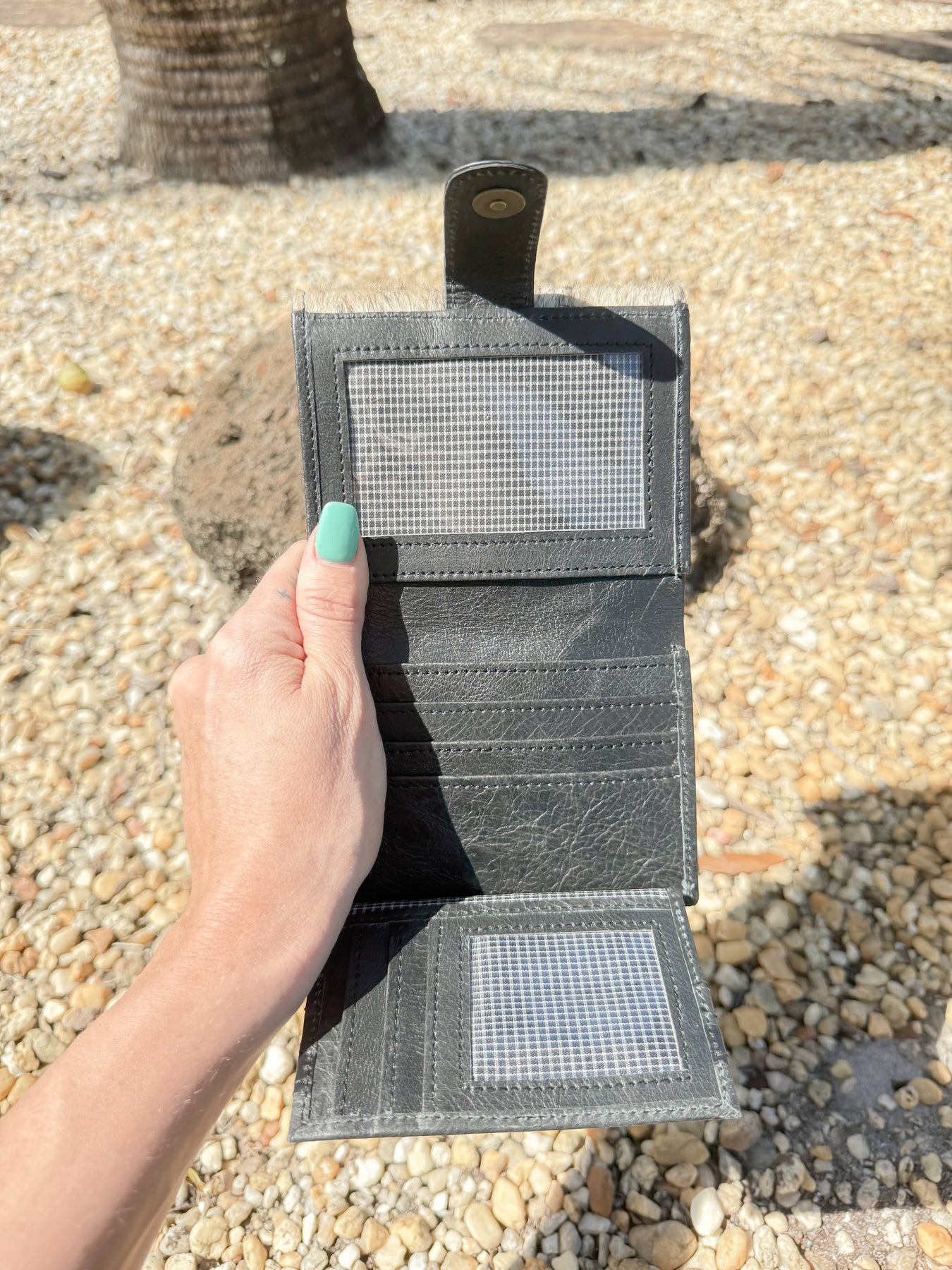 Small but mighty — meet your new favorite sidekick! The Mini Hide Trifold Leather Wallet is the perfect mix of rugged charm and everyday function. Made with genuine leather and real hair-on-hide, each wallet has its own wild side (no two are exactly alike!). Slim enough to toss in any bag but packed with enough card slots and a clear ID window to keep your essentials close. Snap it shut and you’re good to go — from the dusty trail to downtown adventures.