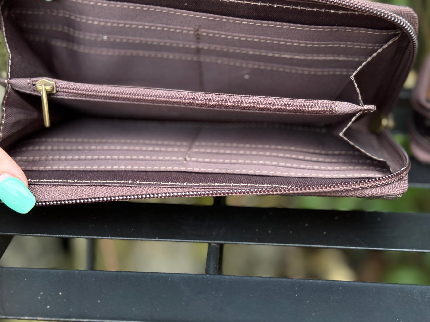 Designed with a full zip-around closure and organized interior, it’s perfect for keeping your cards, cash, and essentials secure—whether you’re hitting the rodeo or the road.