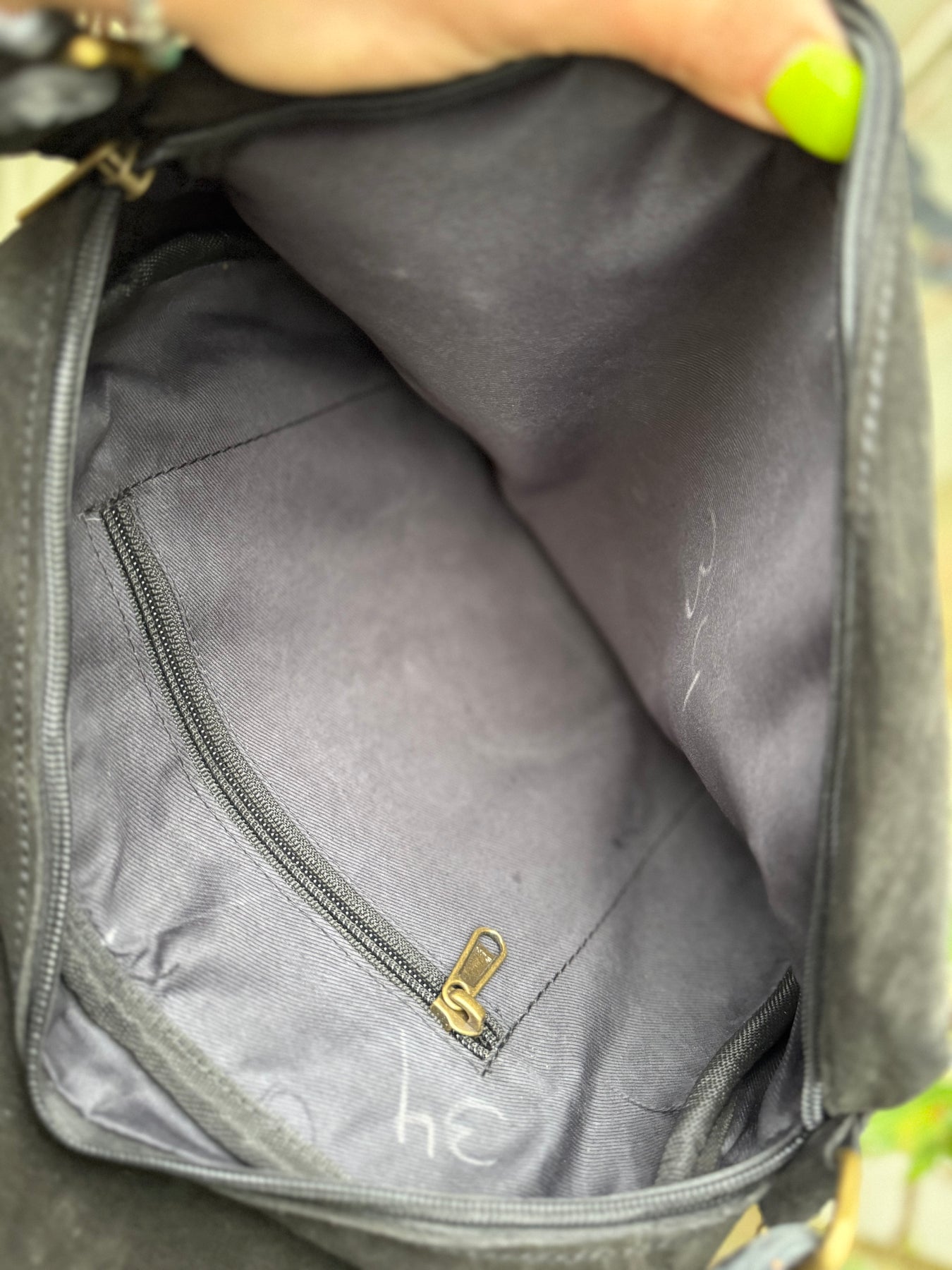 A bold crossbody bag where Western soul meets boho edge. This statement piece features genuine black suede, luxe fringe, and a cowhide flap stitched with whipstitch detailing. Centered in the design is a striking faux turquoise concho—your daily reminder to walk with grit and grace. Spacious enough for your essentials but never bulky, it’s made to roam from rodeo runs to downtown detours. Adjustable strap and magnetic closure keep your goods secure while you keep it wild.
