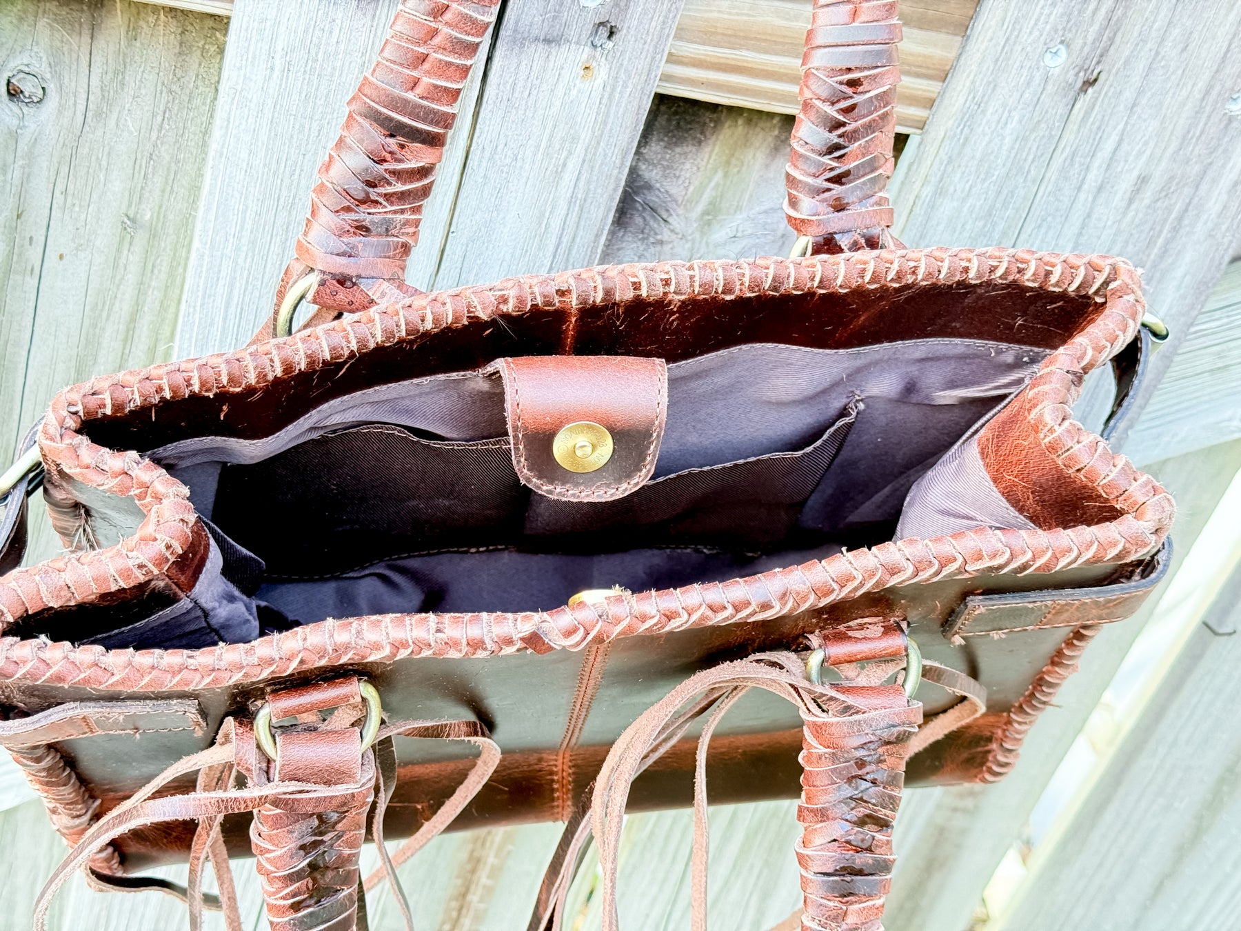 The Everglades Outrider | Distressed Brown Leather Western Purse with Braided Straps and Hair on Cowhide